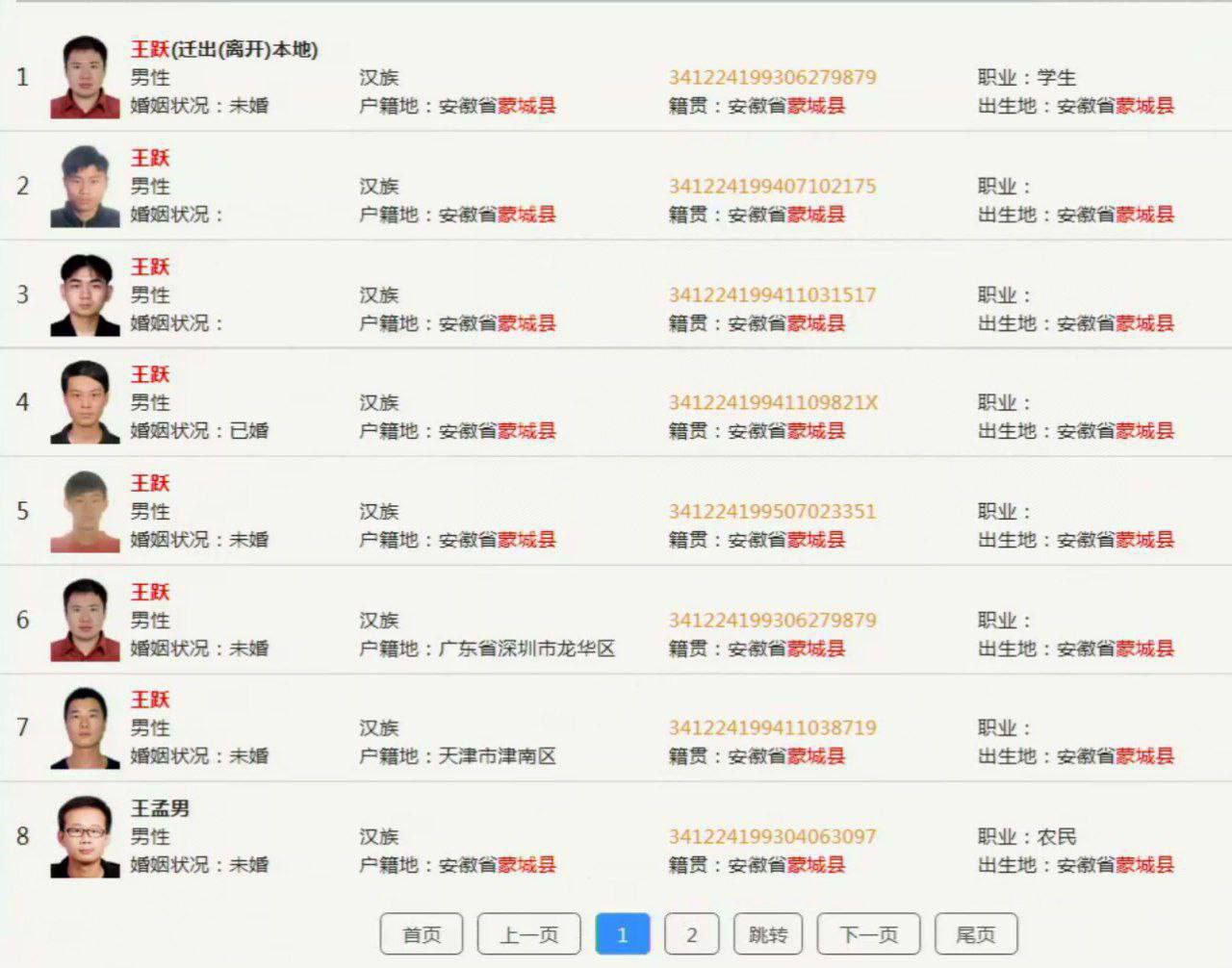 其他信息没有太多帮助,比如是否已婚,在哪工作,现在落户哪里,这些信息都无法找出他的唯一标识:身份证号码。